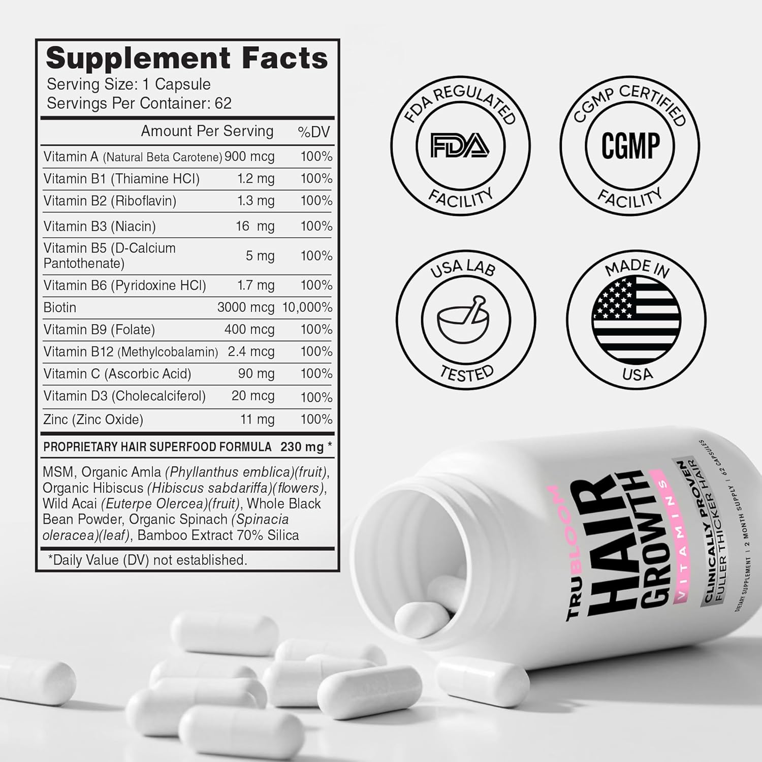 St. Tropica Tru Bloom Hair Growth Vitamins - 2 Month Supply. Clinically Proven to Grow Fuller, Thicker Hair. Natural & Drug-Free with Biotin, MSM, Zinc, D3 + Hair Superfoods. Non GMO
