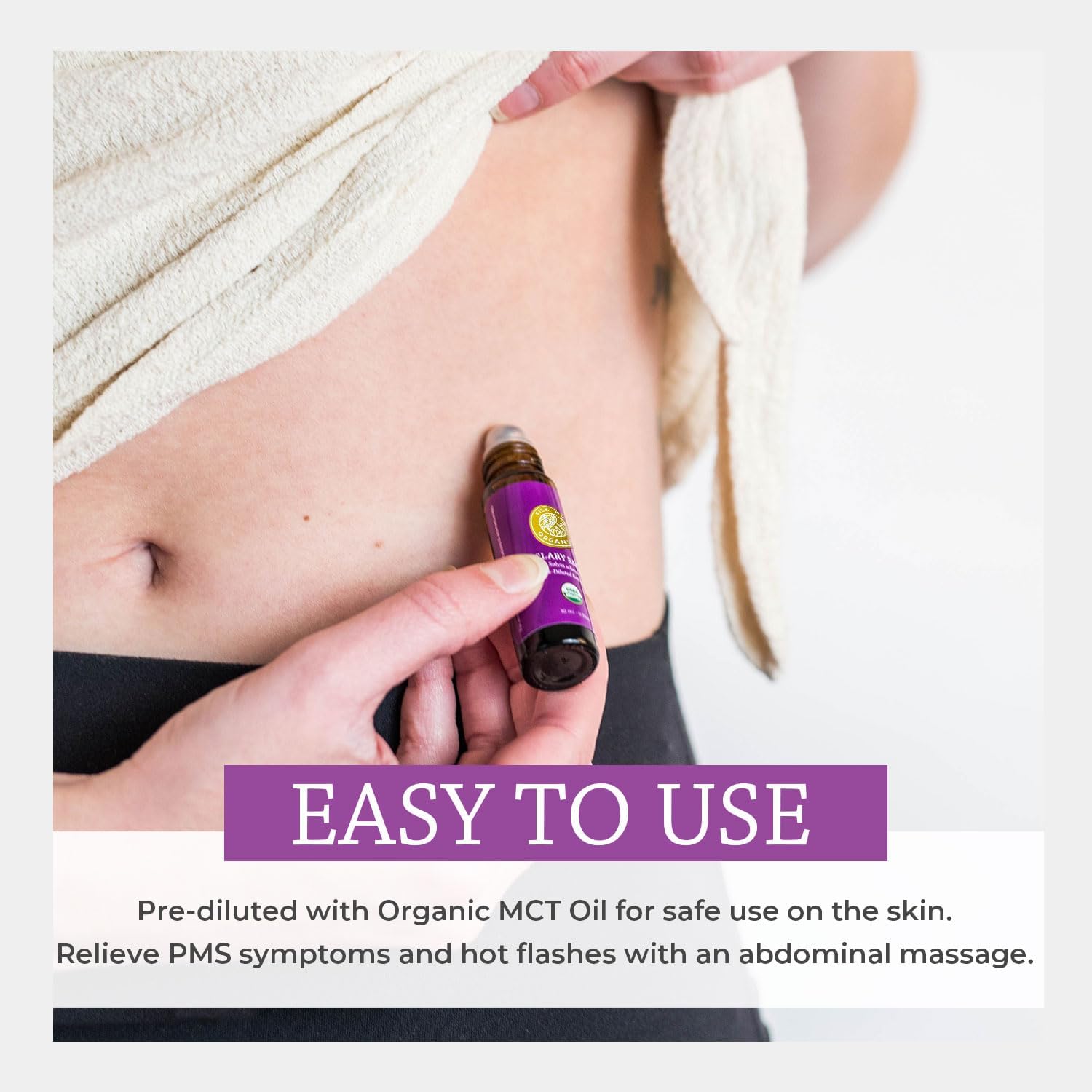- 100% PURE, NATURAL & NON-GMO: Our aromatherapy roll-on is made from USDA Certified Organic Clary Sage essential oil, a Mediterranean herb related to salvia with a herbaceous and slightly sweet aroma that promotes calmness and mental clarity.