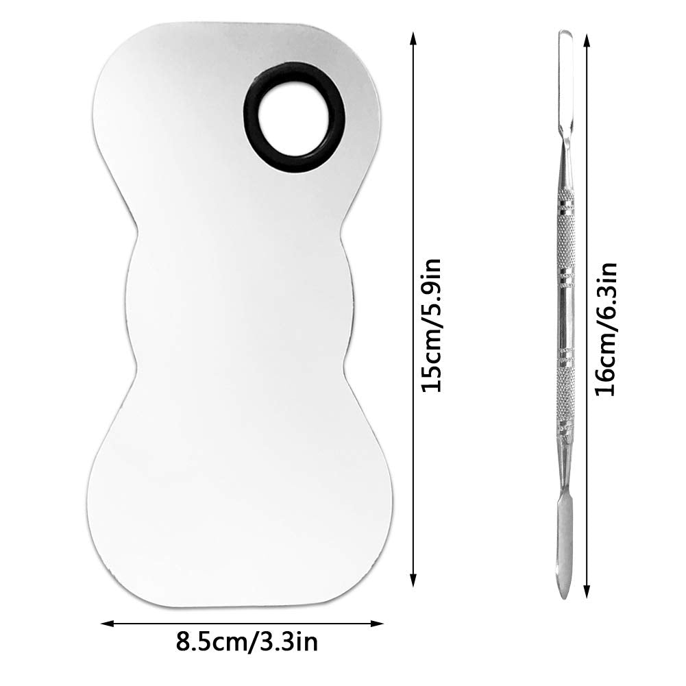 - Great Design:Palette with a diameter 2cm rubber-coated thumb hole for easy holding. Easy to fits your makeup bag, perfect size for traveling and taking along.Stainless steel silver design looks elegant and fashion.The surface is bright as a mirror with lines rounded smooth edges. Make-up color bar with fine rubbing non-slip. The color bar is a flat round head, easy to mix, not hurt your hands.