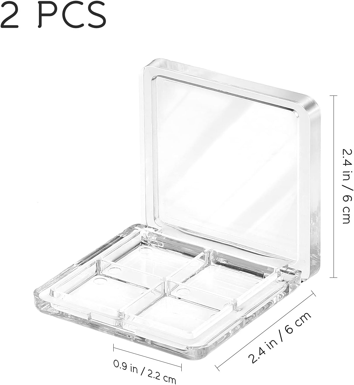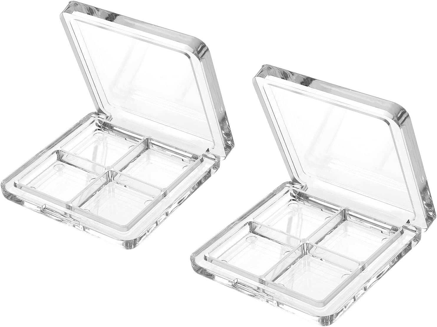 - Refillable Eyeshadow Storage Case - Designed with 4 grids to store different colors, simple but delicate, perfectly sealed to prevent unnecessary leakage. Made from durable and transparent material, these empty boxes are not only sturdy but also allow for easy visibility of colors. The clear design ensures that you can easily identify the shades of your eyeshadows without having to open the box