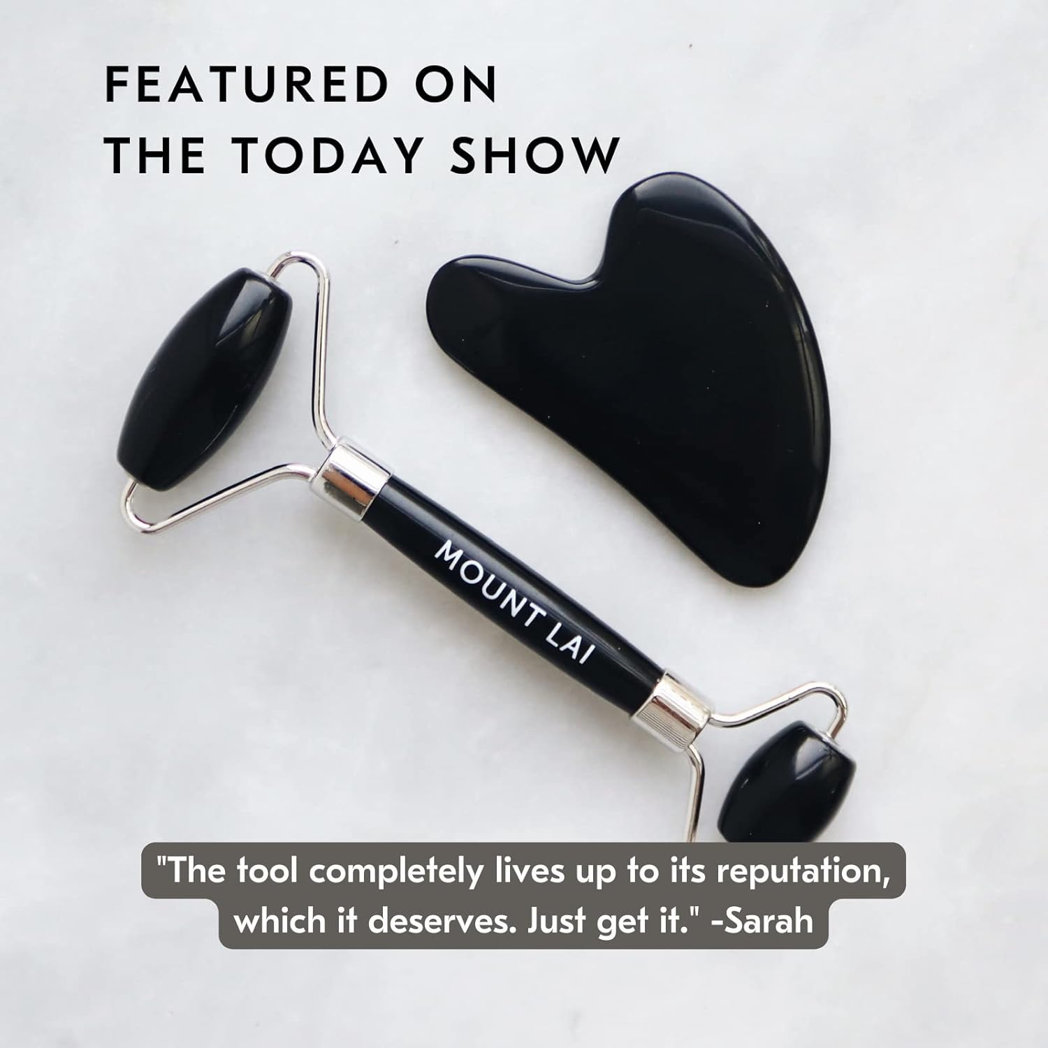 Mount Lai Obsidian Gua Sha Facial Tools, Black Obsidian Gua Sha Facial Tools Set and Roller, Guasha Tool for Face to Relieve Muscle Tension and Reduce Puffiness, Anti Aging Skin Care Sets for Women