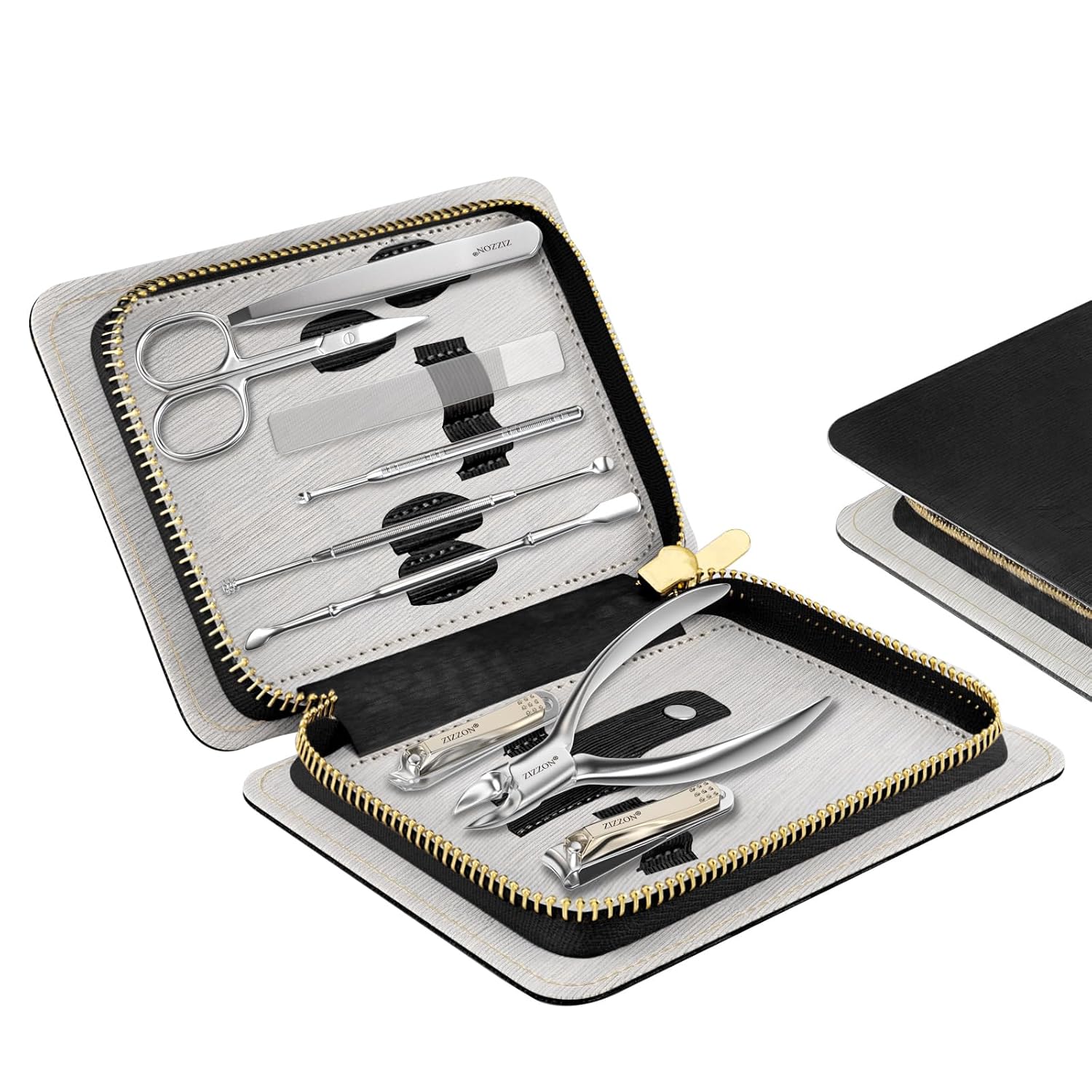 ZIZZON Manicure Set Professional Stainless Steel Toenail and Fingernail Clippers Set 9 in1 Pedicure and Grooming kit with Travel Case (Black)