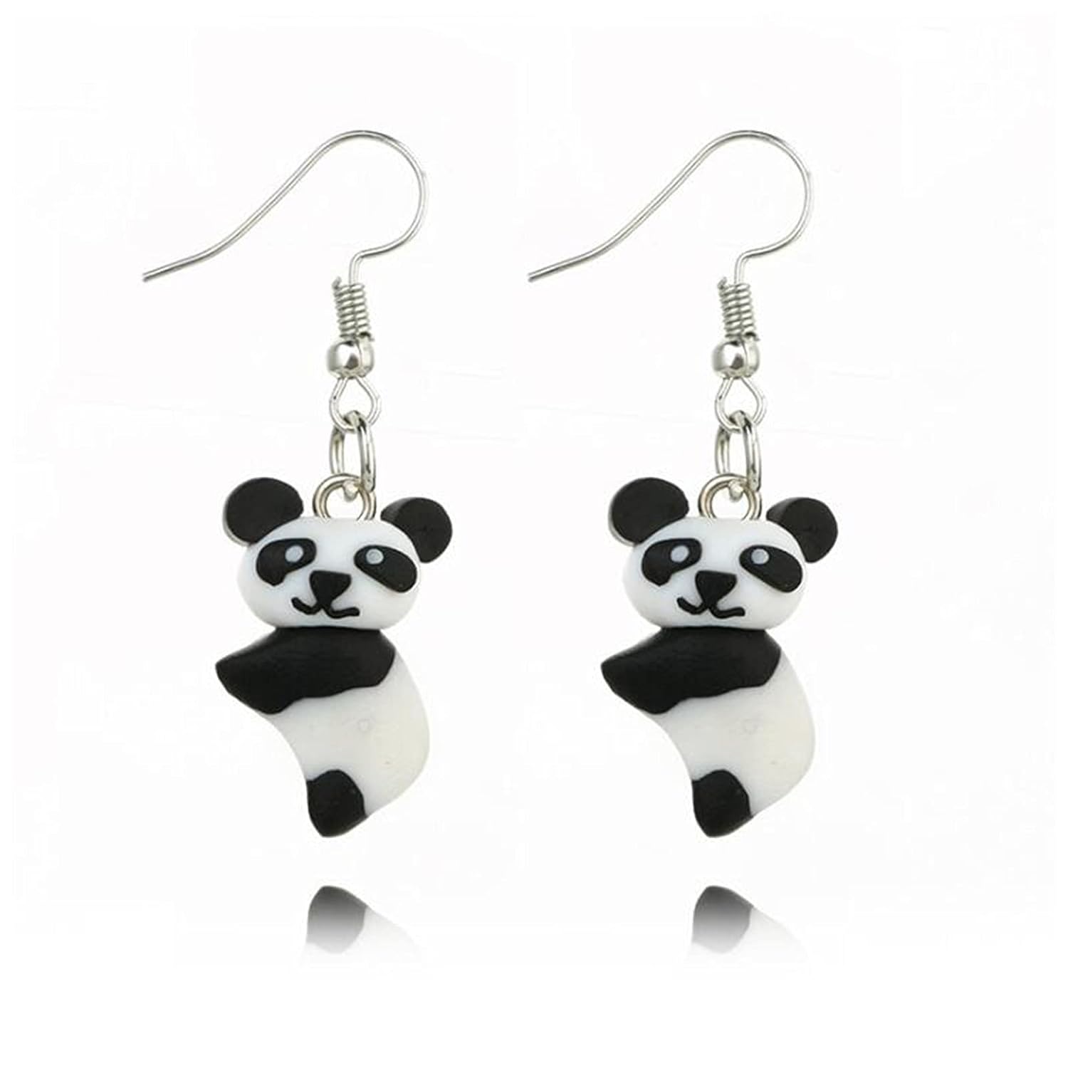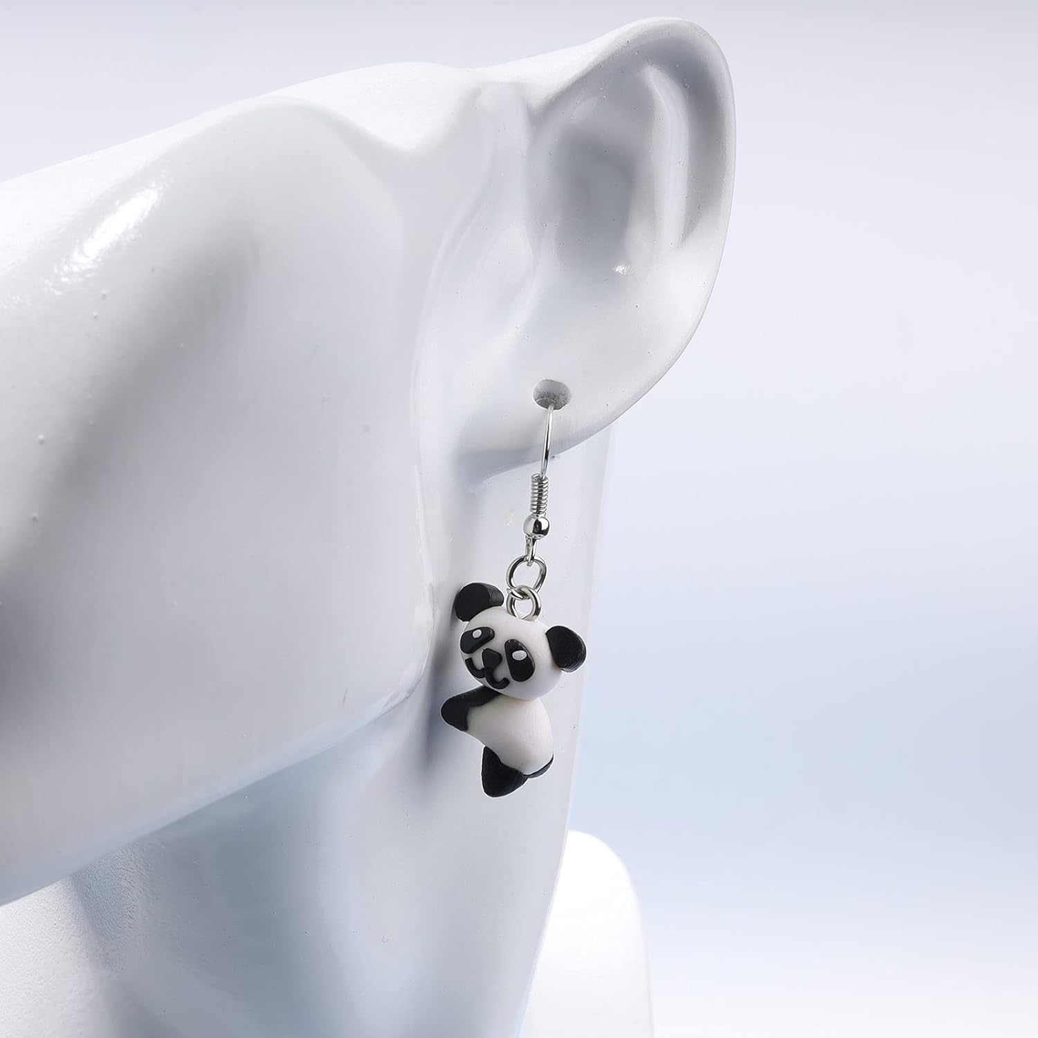 Soft Pottery Panda Earrings Cute Panda Bear Drop Dangle Earrings 3D Animal Earrings Innovative Clay Earrings Jewelry for Women and Teen Girls Gifts