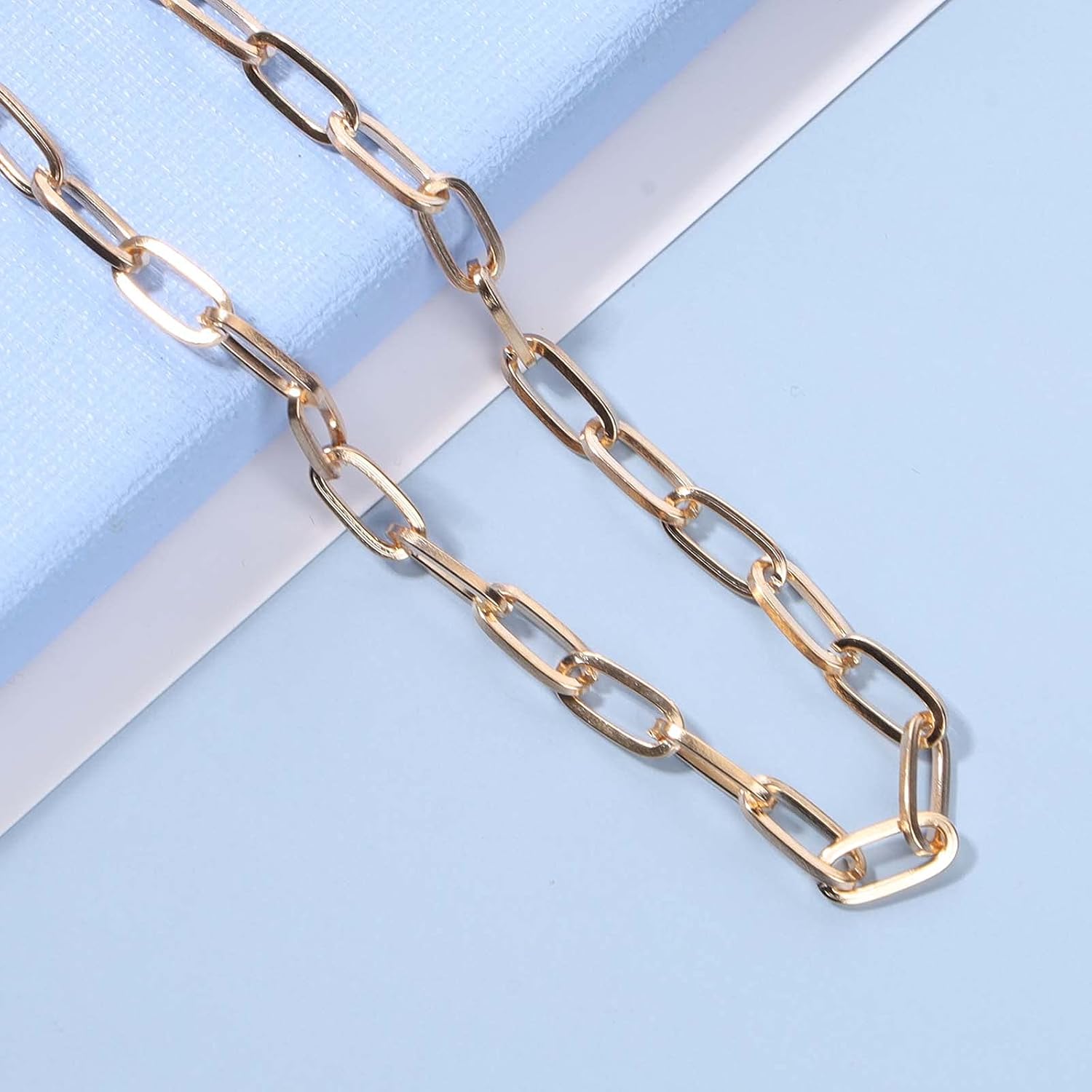Punk Paper Link Choker Necklace Gold Paperclip Chain Necklace Choker Open Link Chain Necklace Trendy Chain Necklace Jewelry for Women and Girls