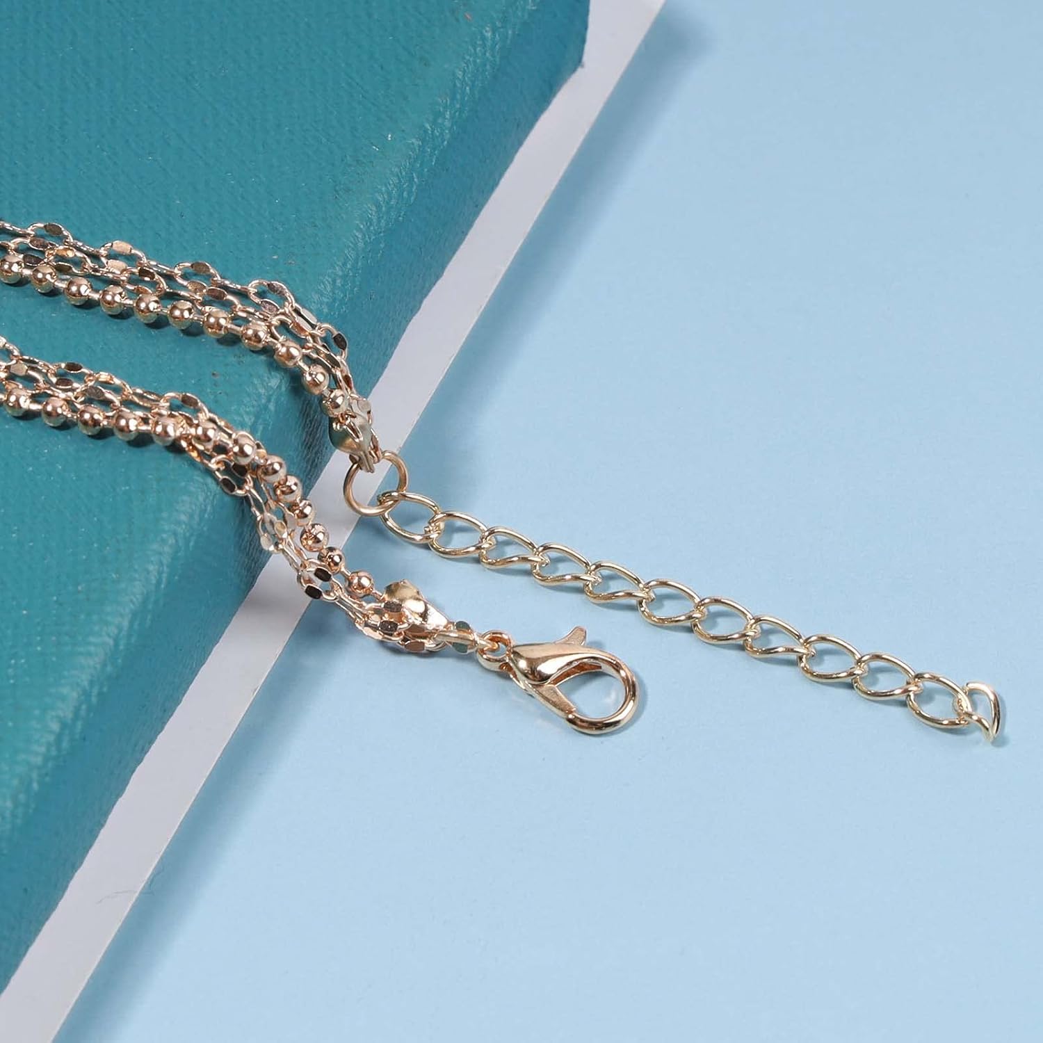 - Gold Sequin faceted chain necklace with Real Images,in gold,stay long and won't tarnish.