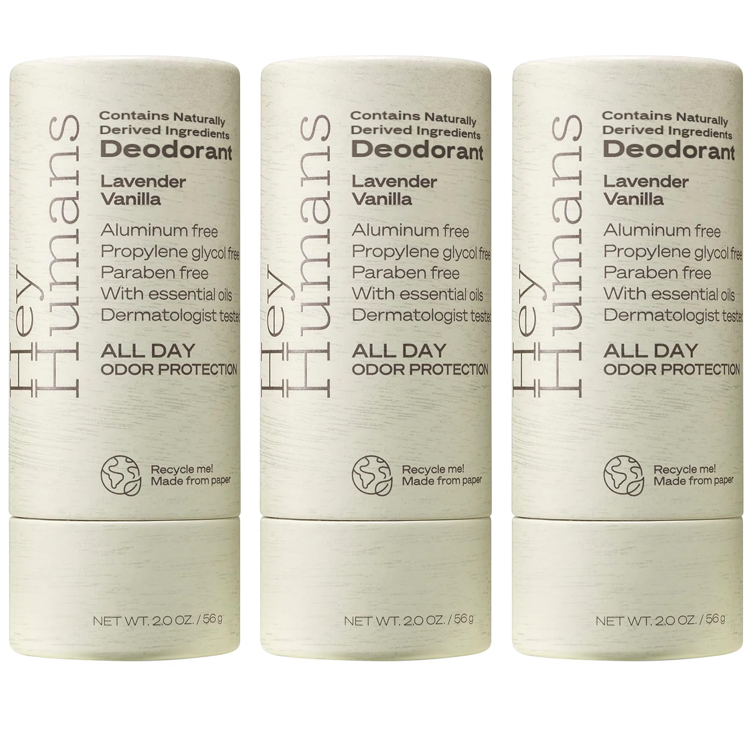 Hey Humans Deodorant, Aluminum Free Deodorant for Women and Men, Contains Naturally Derived Ingredients, All Day Odor Control, Refreshing Deodorant Essential Oils, Pack of 3, Lavender Vanilla