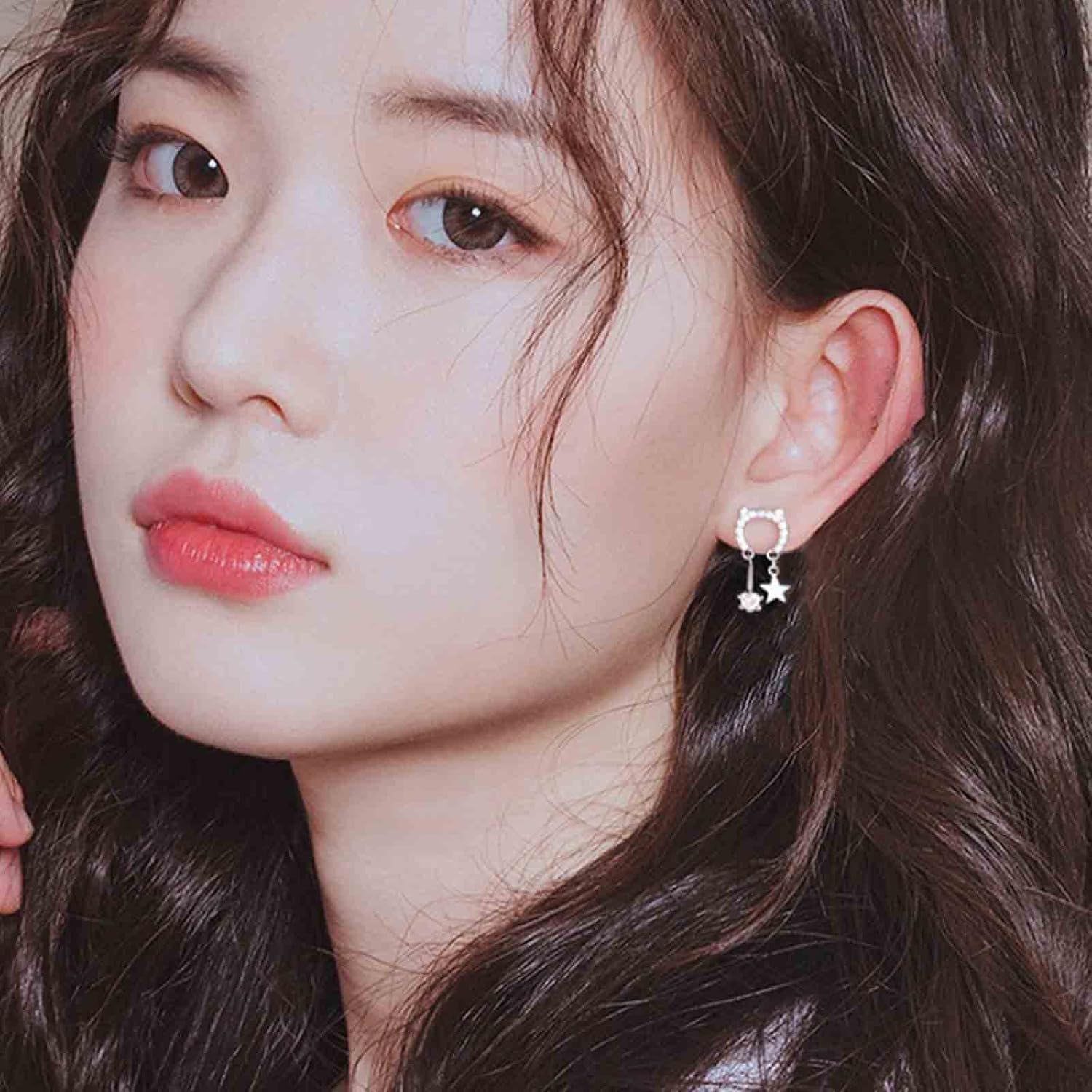 - Silver dangling star earrings in real images,dainty earrings for your choice.