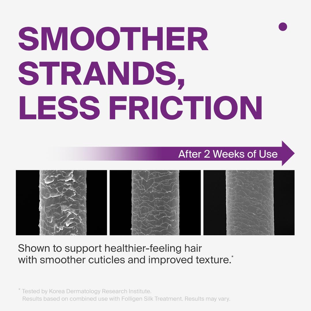 - Folligen Complex for Scalp Care and Hair Strengthening: Our patented Folligen Complex strengthens the scalp, improves its elasticity, and makes hair thicker and fuller. With a size 2,5000 times smaller than pores, active ingredients absorption is ensured for maximum efficiency