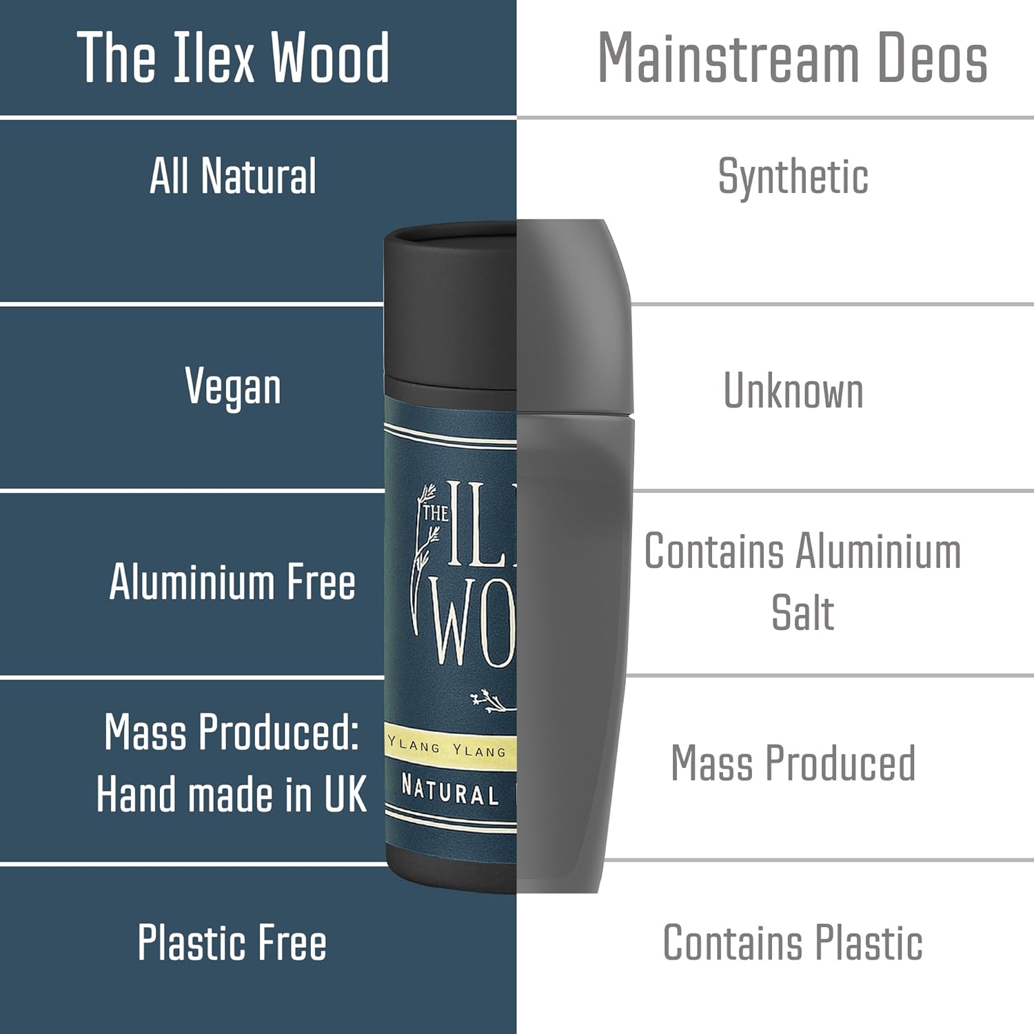 The Ilex Wood - Ylang Ylang & Cedarwood Natural Deodorant - 2.4 fl oz. Natural Deo in Recyclable Cardboard Tube, Vegan, no Plastic, no Alcohol, no Toxins, no Aluminium Salt & Cruelty Free for Women & Men