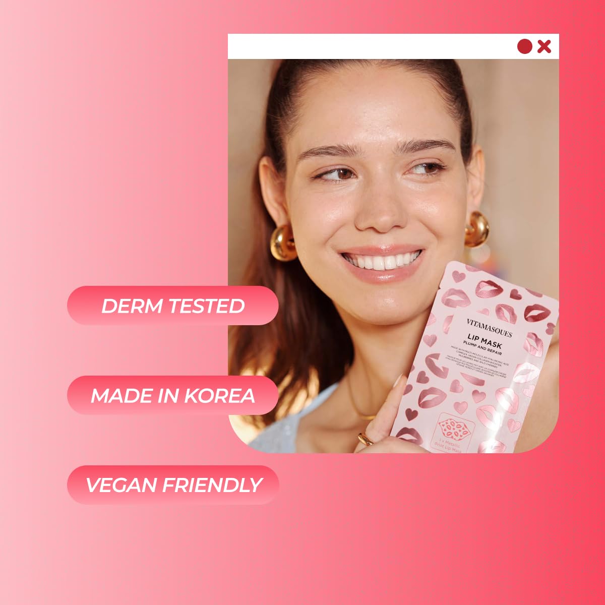 - COLLAGEN LIP MASK: Vitamasques Cherry Vegan Collagen Lip Mask is a vegan-friendly moisturizing and plumping lip mask made with botanical extracts and pro-skin acids to get the luscious, plump lip effect. Includes 3 individually packaged lip masks.