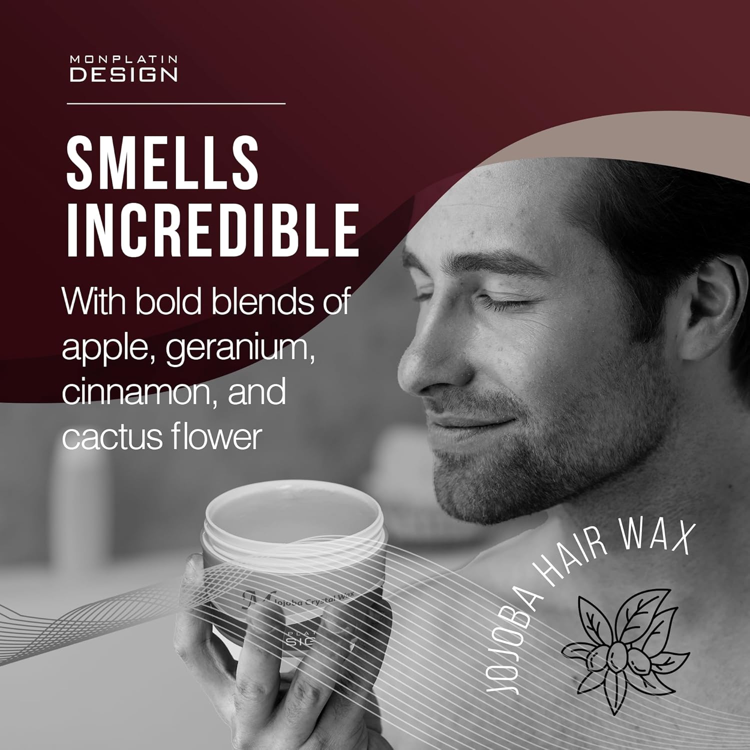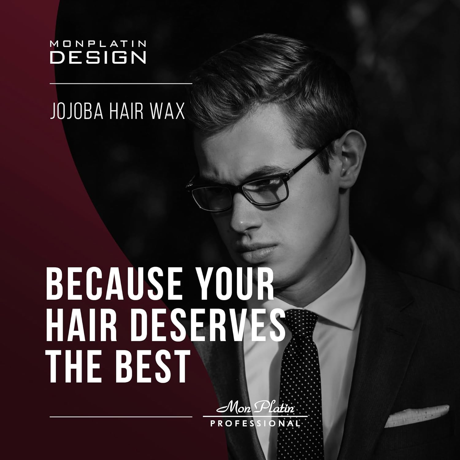 - NOURISHING TREATMENT: Say goodbye to dry, lifeless locks! Our Jojoba Hair Wax is not just your average styling product; it's a nourishing treatment that showers your hair and scalp with organic jojoba extract goodness and smells divine, it's the ideal choice for your daily styling routine. Mon Platin men’s hair wax is easy to rinse out and leaves no sticky or greasy feeling, No residue, just well managed hair.