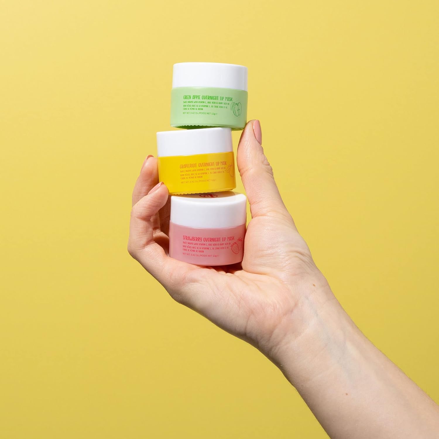 - FULL LIPS - These Apple, Grapefruit & Strawberry flavored Sweet Dreams lip masks contain aloe vera to and grape seed oil to moisturize and nourish dry and chapped lips. Hydrates for a full irresistible look. The perfect lip care partner pairing for your makeup kit