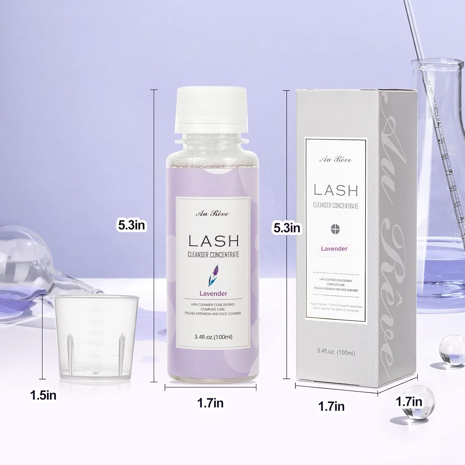 Eyelash Cleanser Concentrate 100ml Eyelash Extension Cleanser Inside the Eyelash Extension Kit Oil-Free Eyelash Extension Shampoo Perfect for Salon-Can Make Ten 60ml bottles of Lash Shampoo,Lavender