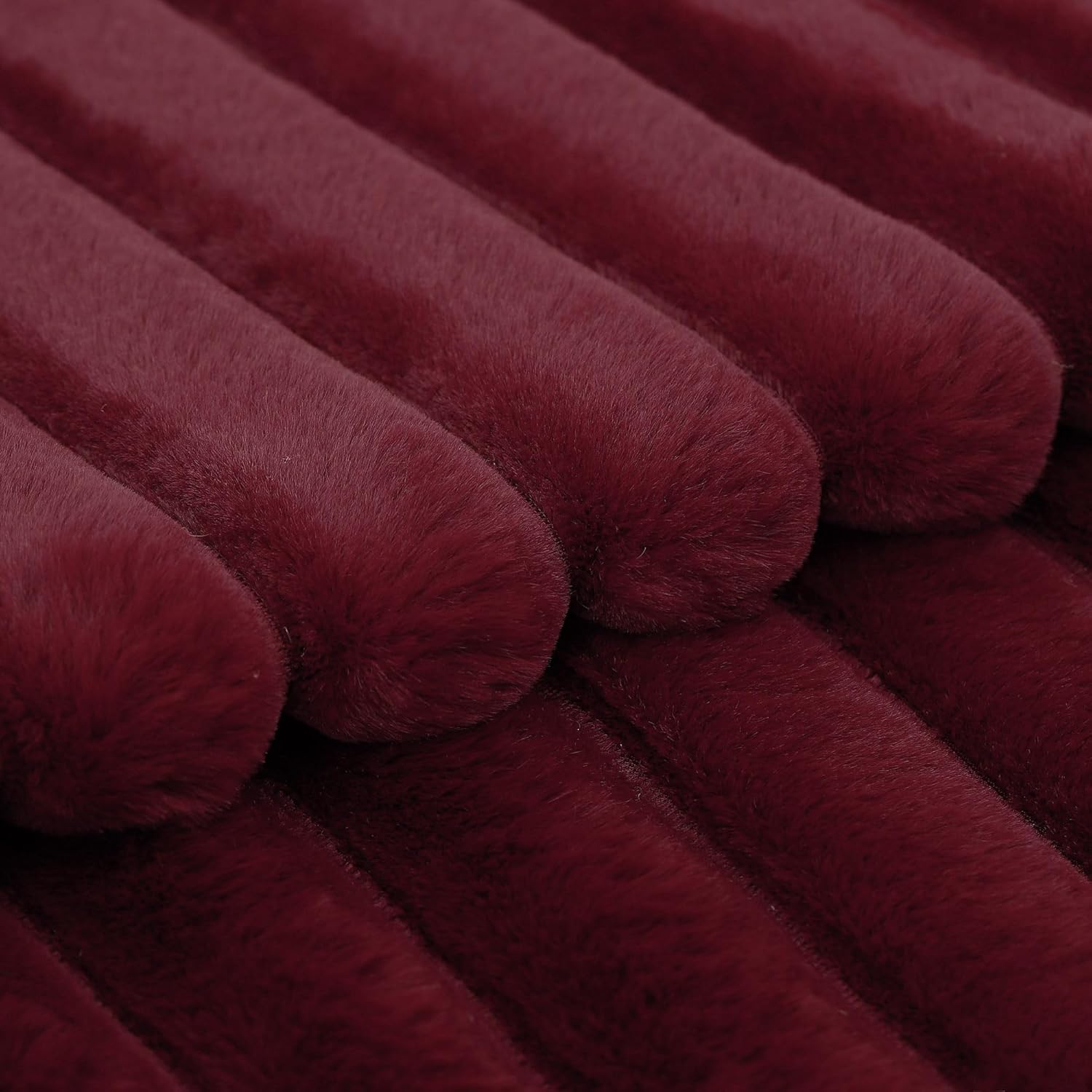 MADIZZ Set of 2 Faux Wool Plush Decorative Throw Pillow Covers 16x16 Inch Burgundy Fluffy Striped Soft Decorative Cushion Cover for Sofa Bedroom Pillow Shell