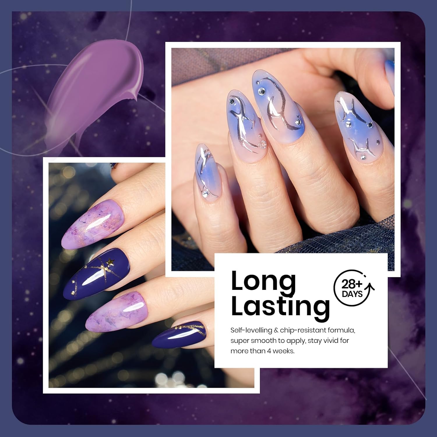 - 【Beetles Lost Universe Series】: We have brought together the 6 most popular new colors. This "Lost Universe" collection comes in 6 bold colors of light blue, navy blue, purple, and shimmering silver, making it mysterious, romantic, and stylish. A fusion of blue and purple aesthetic shades for a charming look, perfect for winter! Color Number: d483-d484-d485-d486-d487-d488