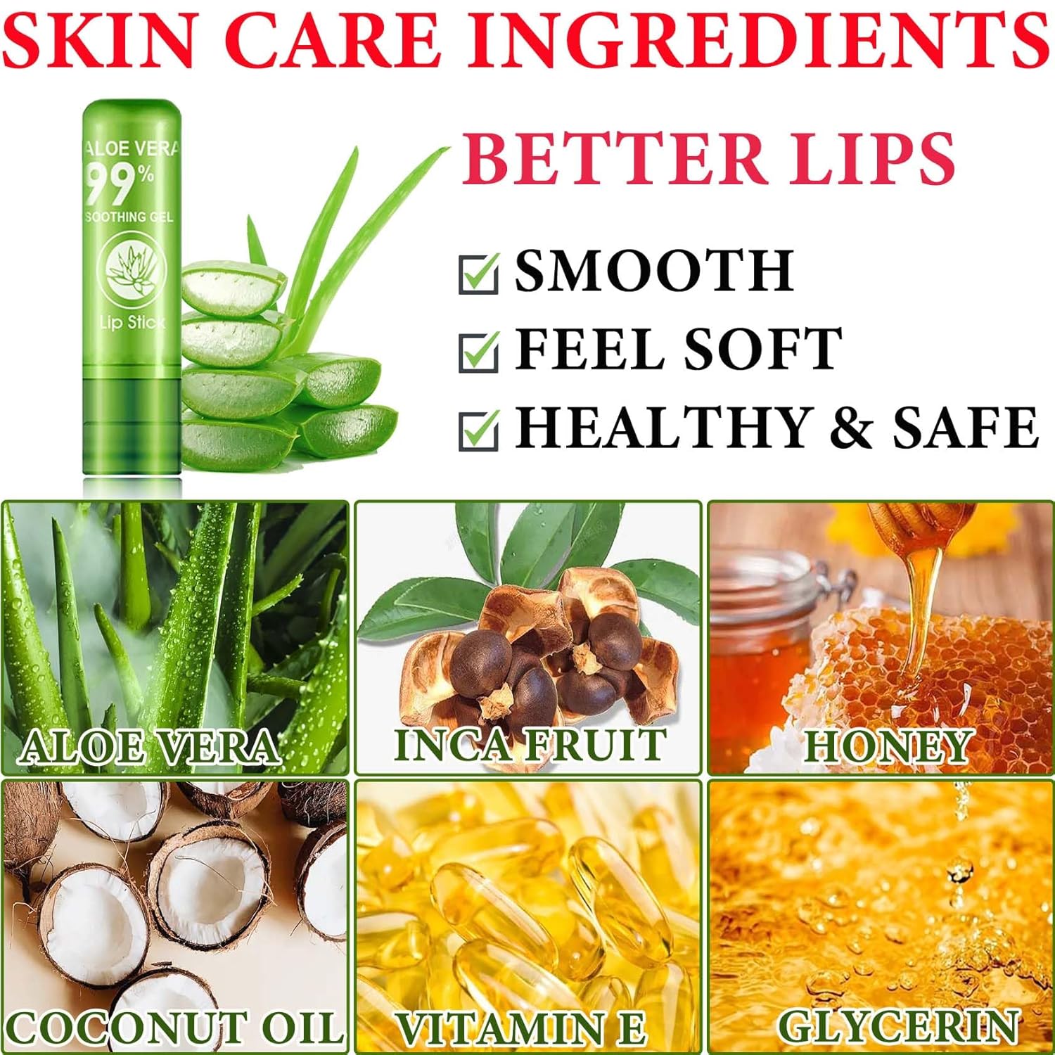 5 Pcs Aloe Vera Color Changing Lipstick for Women - Long Lasting Moisturizing Lip Gloss, Tinted Balm, Magic Temperature PH Changing Lip Stick
