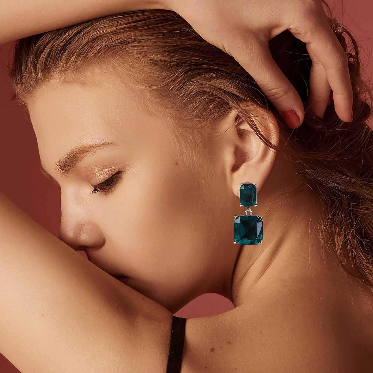 - Square emerald dangle earrings made of high-quality alloy,very durable for daily wear.