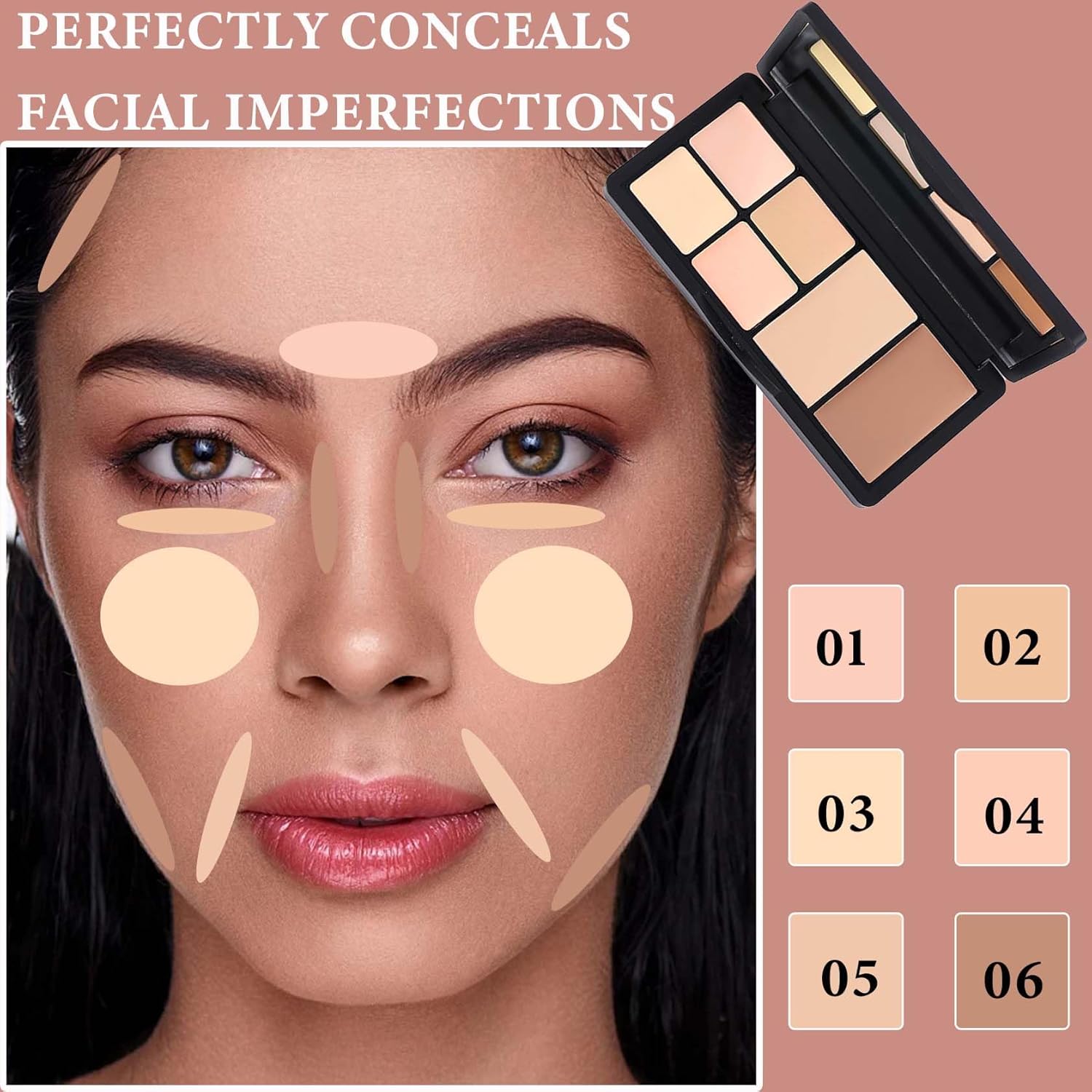 - 📦【Easy to Use】Concealer contour palette's texture is light and delicate, very easy to apply makeup, close to the skin, the makeup effect is natural and glossy, six colors can be based on their own skin tone with the freedom to mix and match the color, more in line with your skin.
