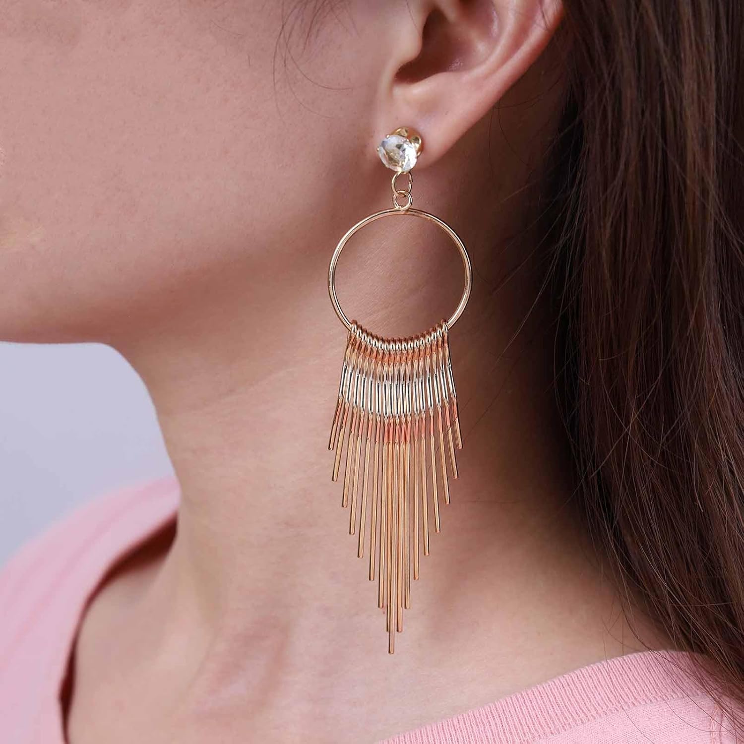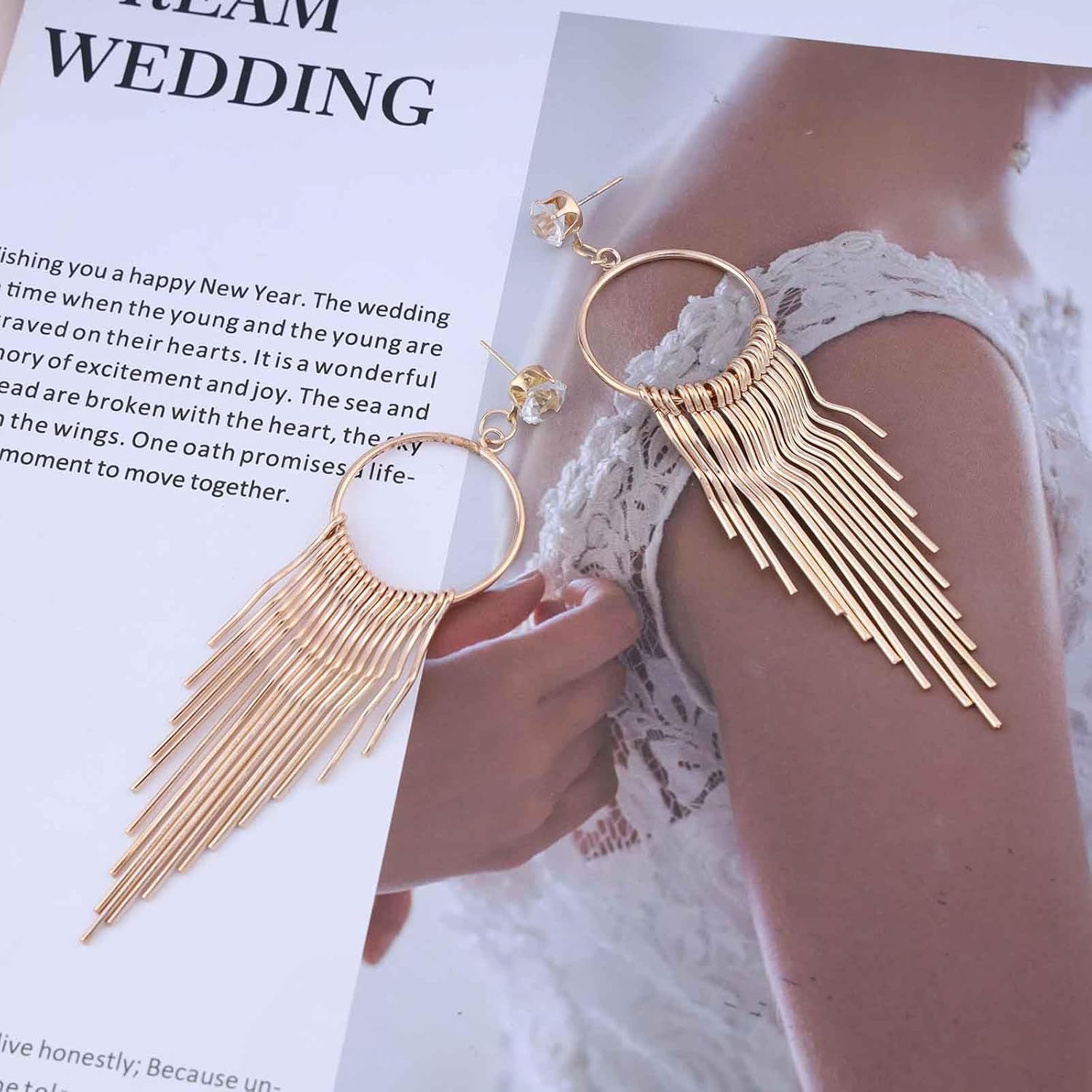 Boho Circle Bar Drop Earrings Hollow Circle Dangle Earrings Gold Chain Tassel Earrings Long Metal Tassel Earrings Jewelry for Women