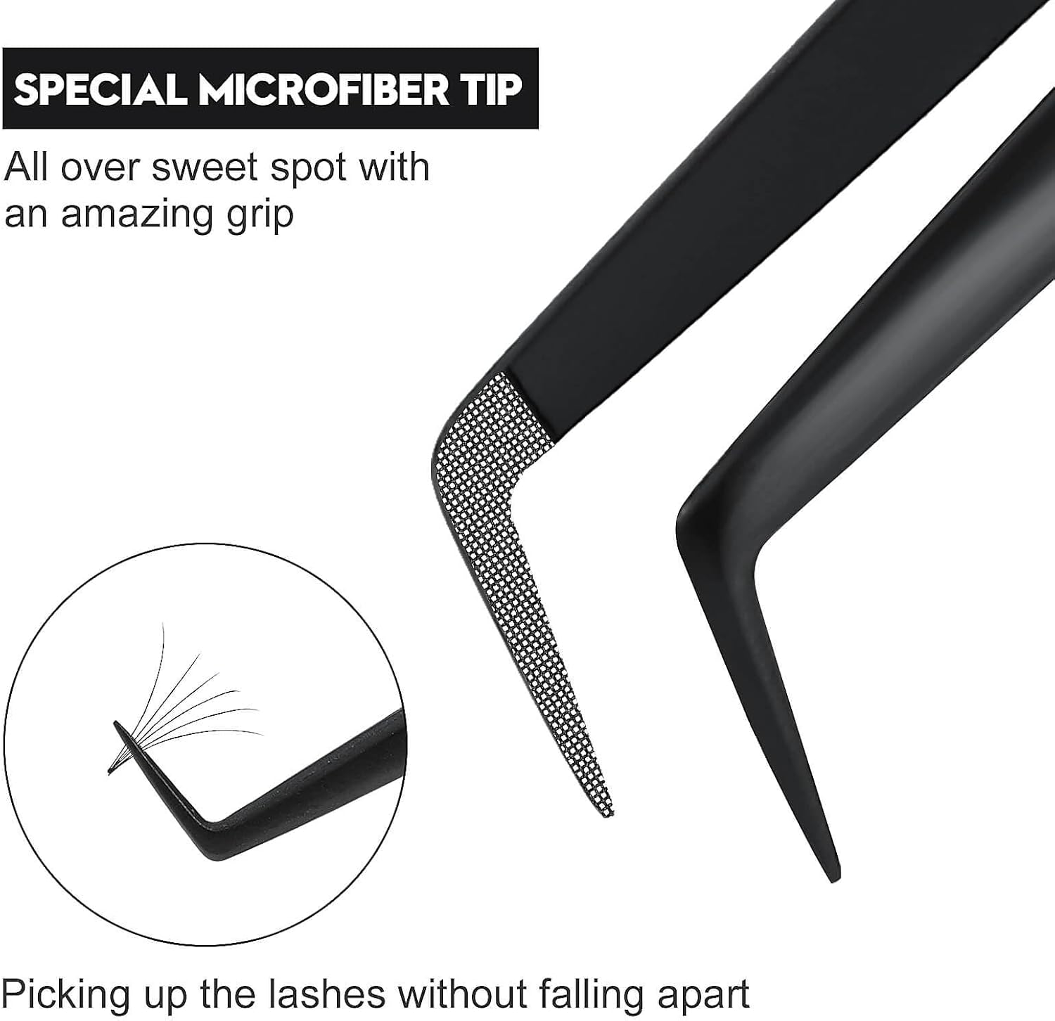 • ★FIBER TIP LASH TWEEZERS:Specifically designed with a microfiber tip Special microfiber tip—All over sweet spot with an amazing grip, picking up the lashes without falling apart.For professional lash artists use & beginner Friendly.