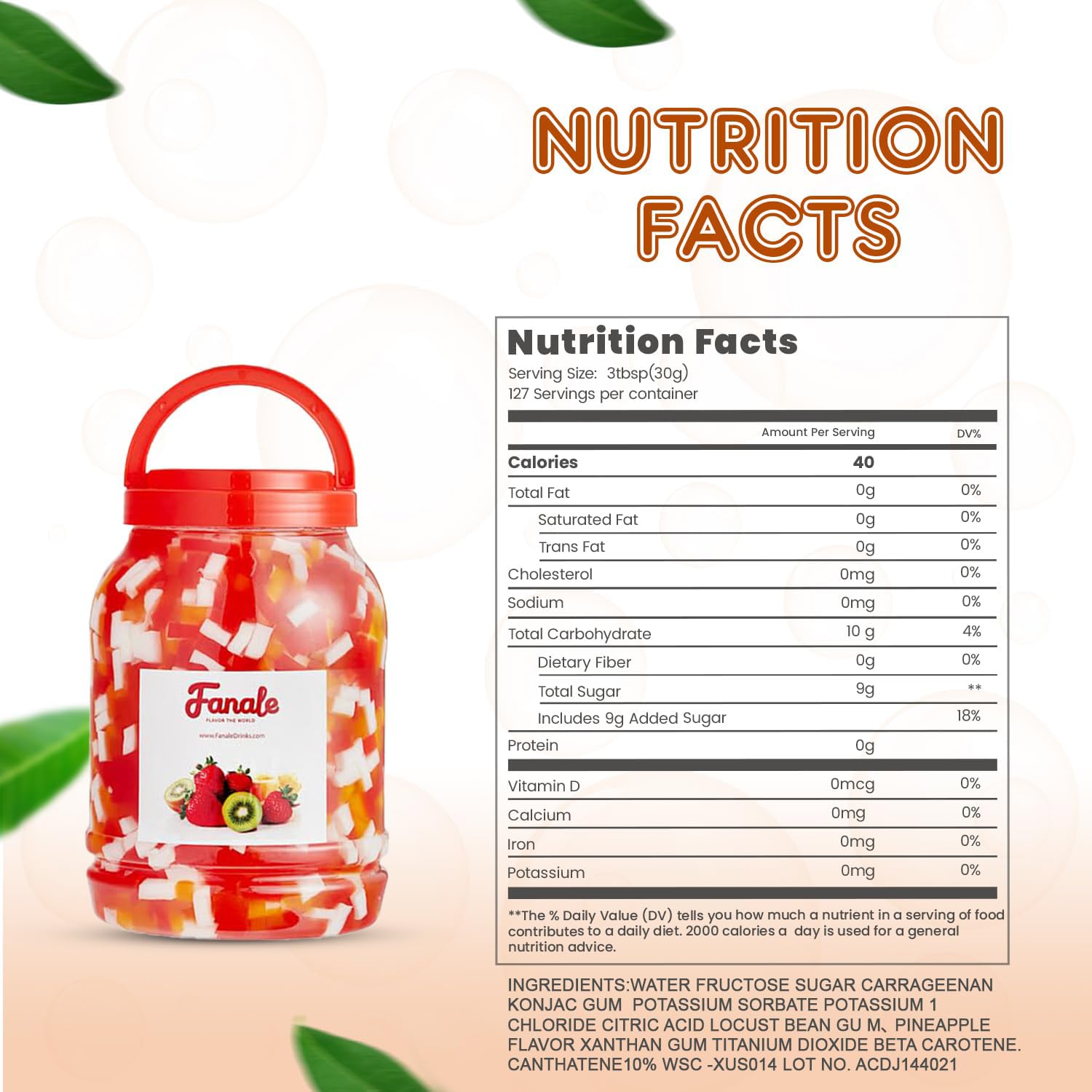 - ๐๐ฐ๐๐๐ญ ๐๐ง๐ ๐๐ฑ๐จ๐ญ๐ข๐ ๐ ๐ฅ๐๐ฏ๐จ๐ซ: Each Fanale coconut jelly boba tea variety is infused with sweet and exotic flavors that complement a range of recipes. This nata de coco jelly topping includes strawberry, lychee, blueberry, mango, sakura, green apple, coconut, Konjac, and coffee flavors, adding a distinct and delightful twist to your creations.