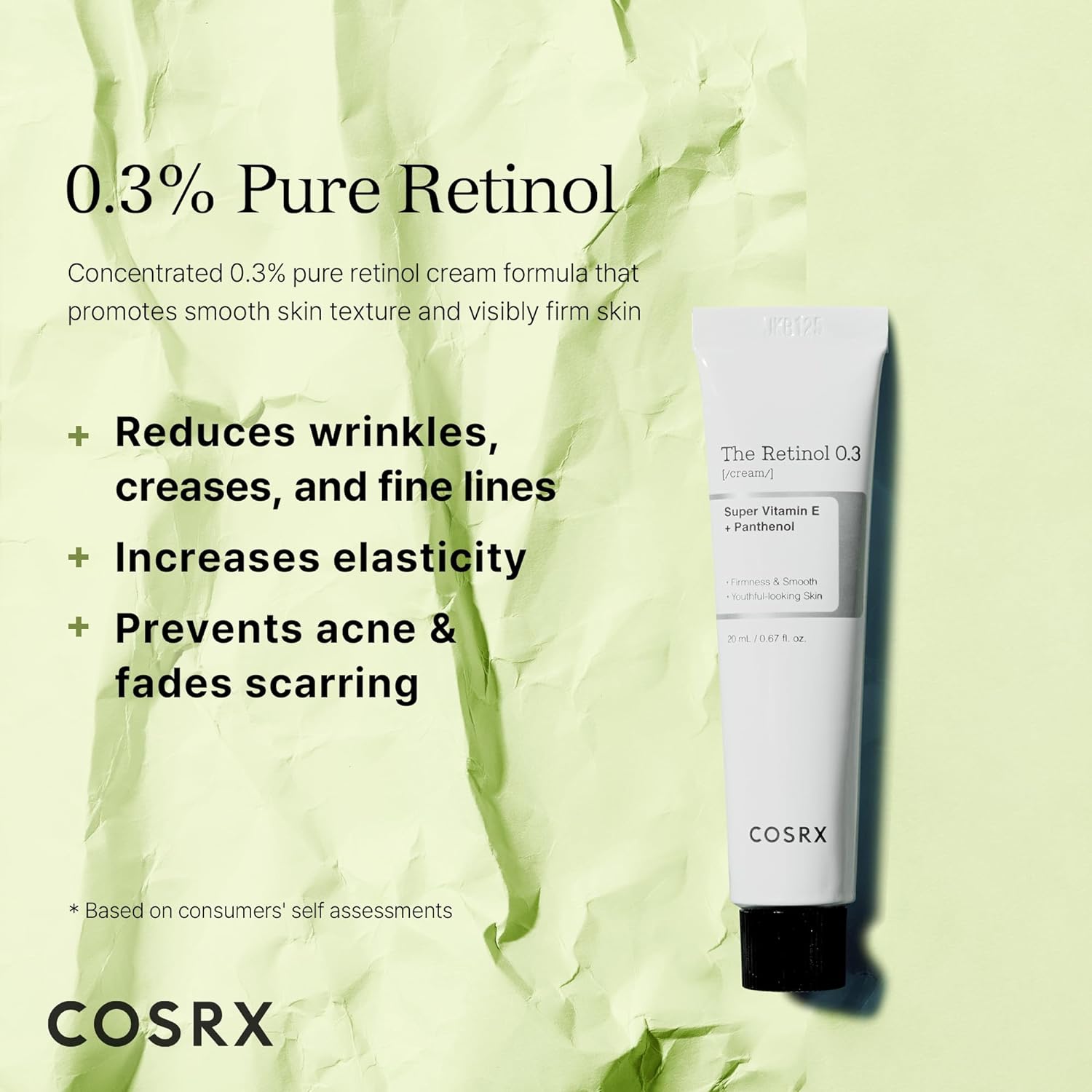 - Key Benefits: Based on real results from consumers' self assessments, the Retinol 0.3% Cream helps reduce wrinkles, creases and fine lines while increasing the skin's elasticity, preventing acne, and fading scarring.