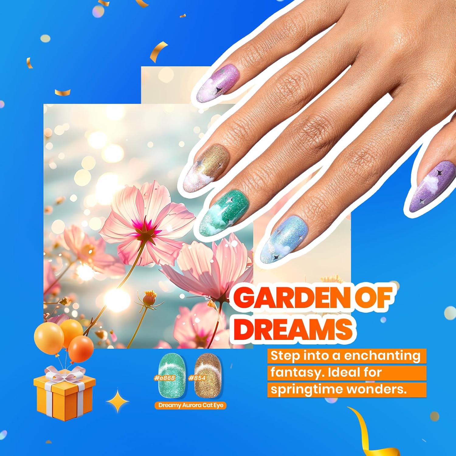 - Luxury Cat Eye Gel Polish Set: Beetles 36 colors cat eye gel nail polish set includes five kinds of cat eye effect gel polishes(moon cat eye,dreamy aurora cat eye,rainbow candy cat eye,velvet cat eye,chameleon cat eye) beauty gift sets, allowing you to create various styles. Unleash endless possibilities and enjoy DIY cat eye nail designs.