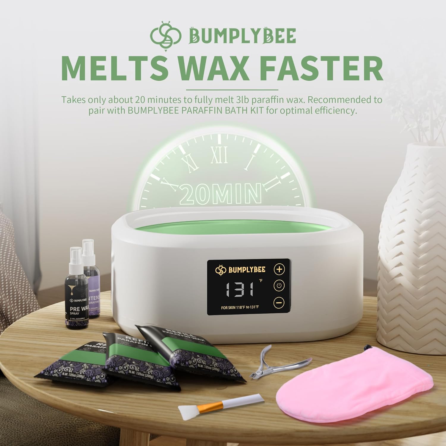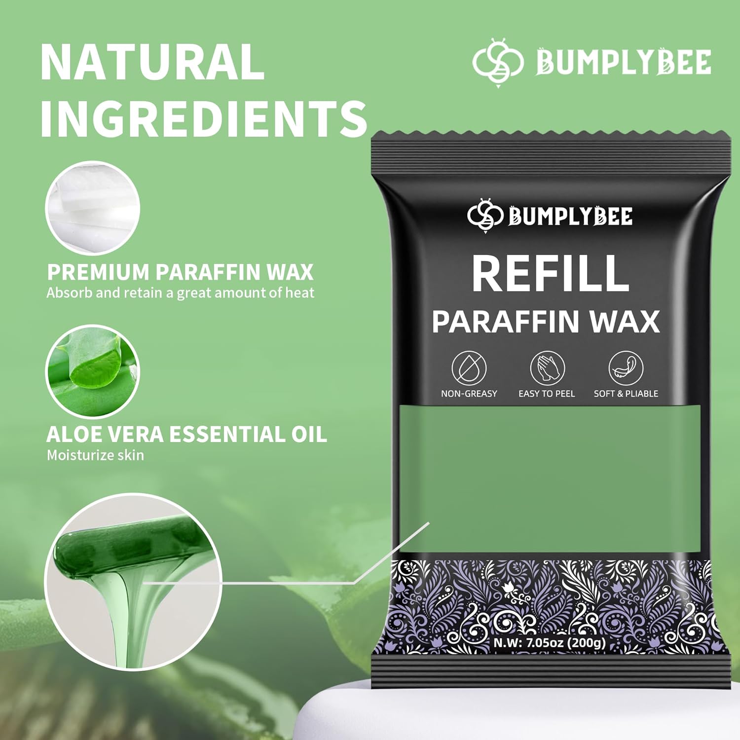 - Natural & Fast-Melting Formula - BUMPLYBEE Aloe Vera Paraffin Wax is crafted with natural paraffin and enriched with aloe vera essential oil for a serene experience; Designed for paraffin wax bath enthusiasts, our wax melts quickly and evenly, saving time and ensuring a swift, rejuvenating skin-care session; Ideal for regular use on hands and feet, our paraffin wax for hands and feet enhances your home spa experience, making it smooth and effective