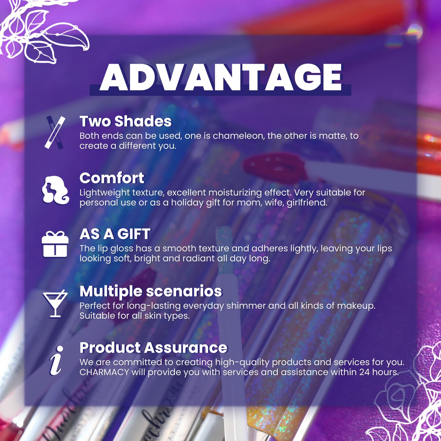 CHARMACY Multichrome Double Head Non-Stick Lip Gloss, Metallic Colourful Lip Glaze, Anti-transfer, Long Lasting Waterproof Liquid Lipstick Makeup (#07)