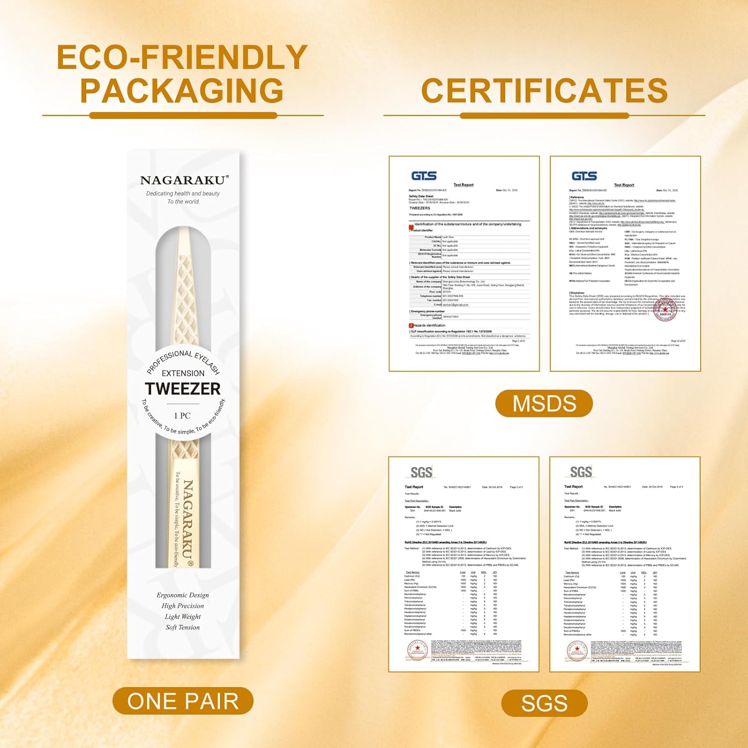 • Classic straight tweezers: AG-03 Color: Gold /Length: 5.31 inches; Width: 0.39 inches. These handcrafted tweezers are made of high-strength stainless steel, which is resistant to most acids and other corrosive agents. We give each tweezer a box to protect the tweezers
