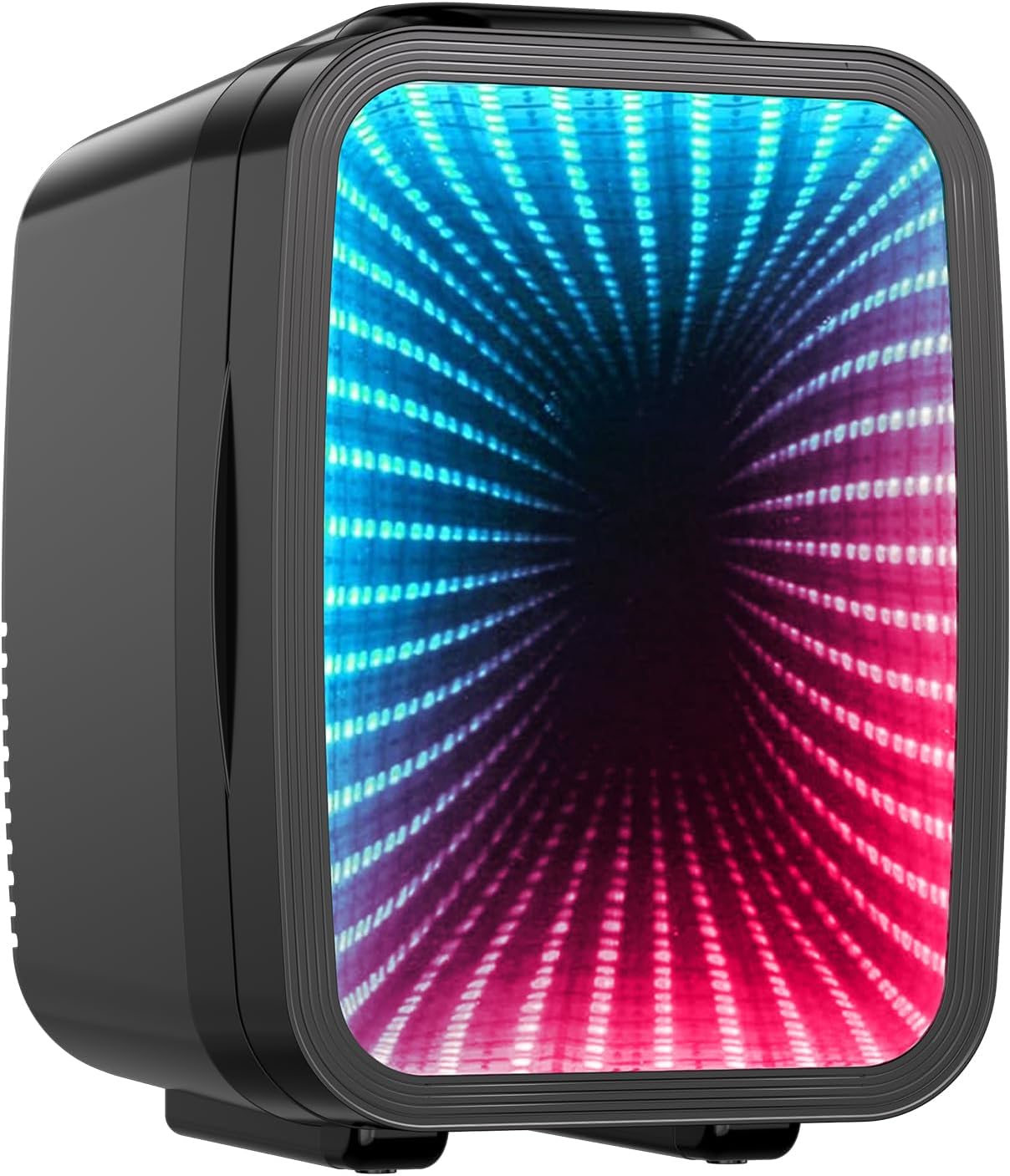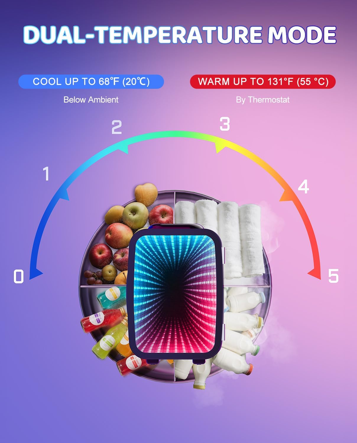 MF01C Mini Fridge, 7 Light Modes With Running Light Mode, 4 Liter/6 Cans, Quiet Cooling & Retention Function, AC/DC Power, Gaming Mini Fridge for Bedrooms, Office and Car
