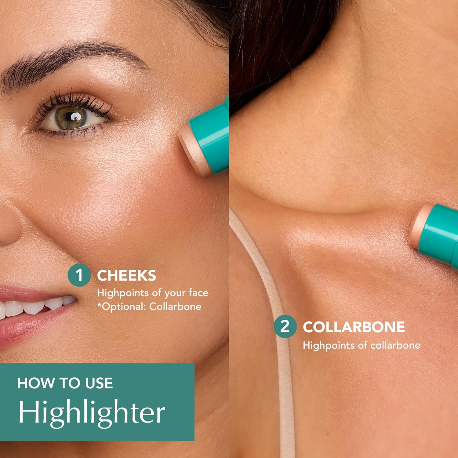 - CREAM HIGHLIGHTER STICK: This easy-to-use highlighter makeup stick delivers a natural shine and glow with effortless blendability. From soft color to bold definition, the built-in brush helps you achieve a smooth, seamless finish in seconds. Apply our three highlight shades on the high points of the face, collarbone, or shoulders for an instant glow.