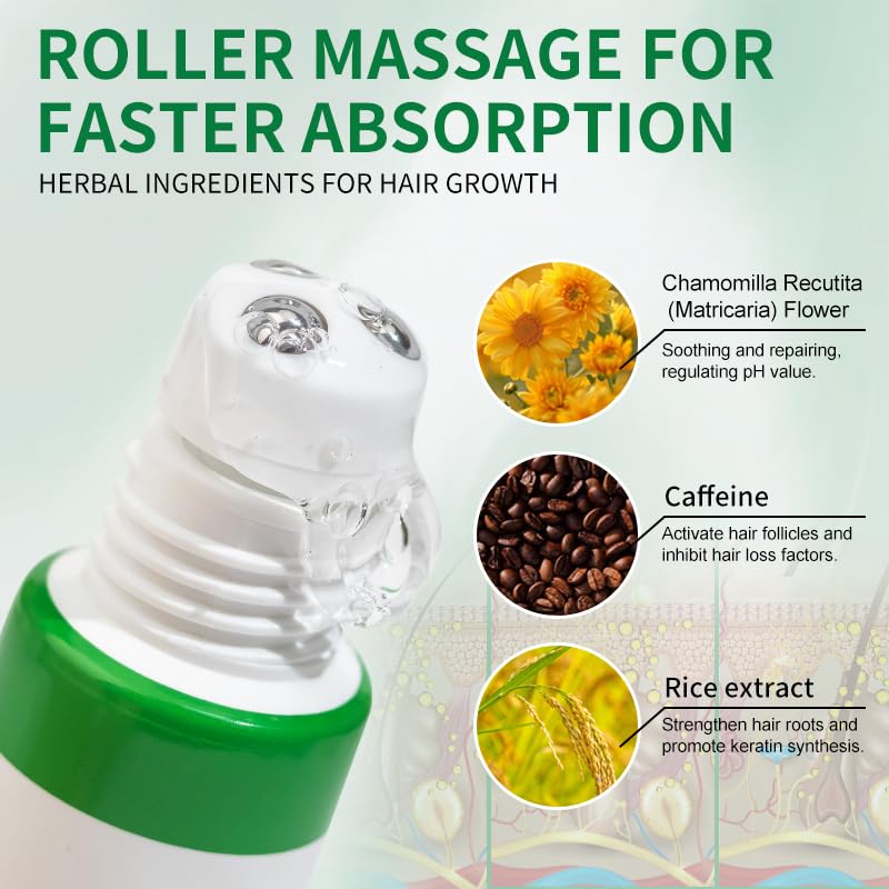 - 【Easy to Apply】The triple roller applicator design allows for precise application of the hair growth serum while gently massaging the scalp for maximum absorption. Use twice daily to better nourish the hair roots, promote blood circulation, and achieve better deep penetration. The scalp serum is convenient to carry, ready to use anytime.